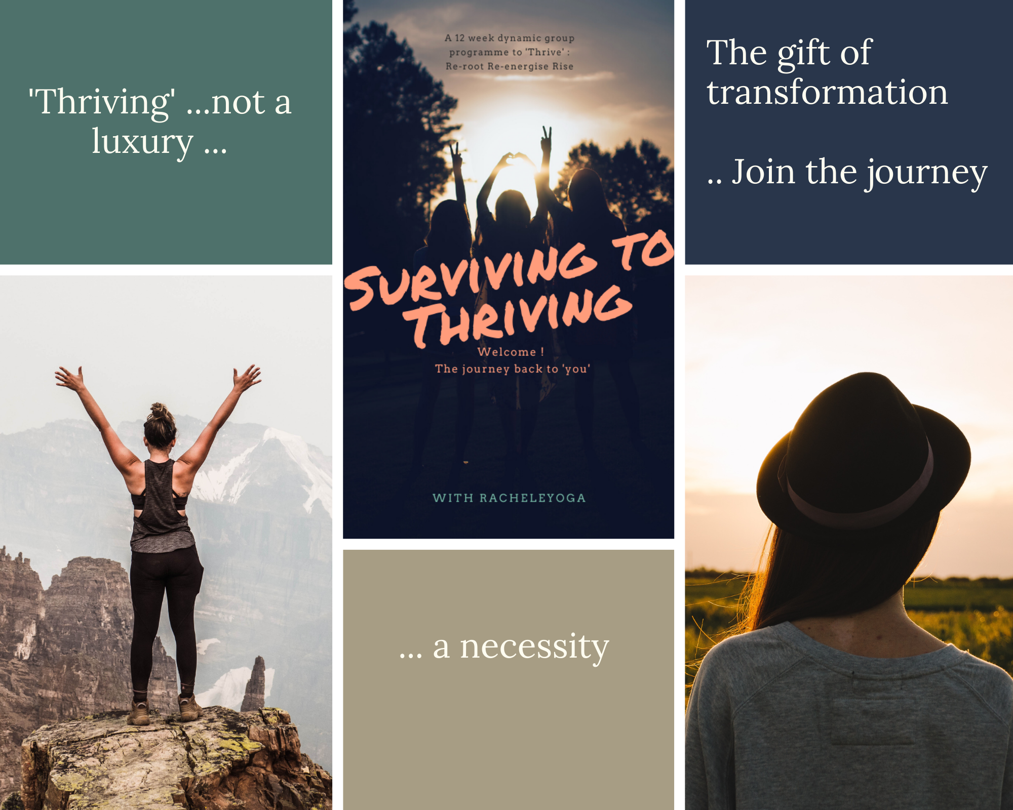 Welcome ! .. join the journey / roadmap to accelerate your wellbeing to new heights in this 12 week dynamic group coaching programme: Surviving to Thriving : Re-root, Re-Energise, Rise, Shine and Thrive.